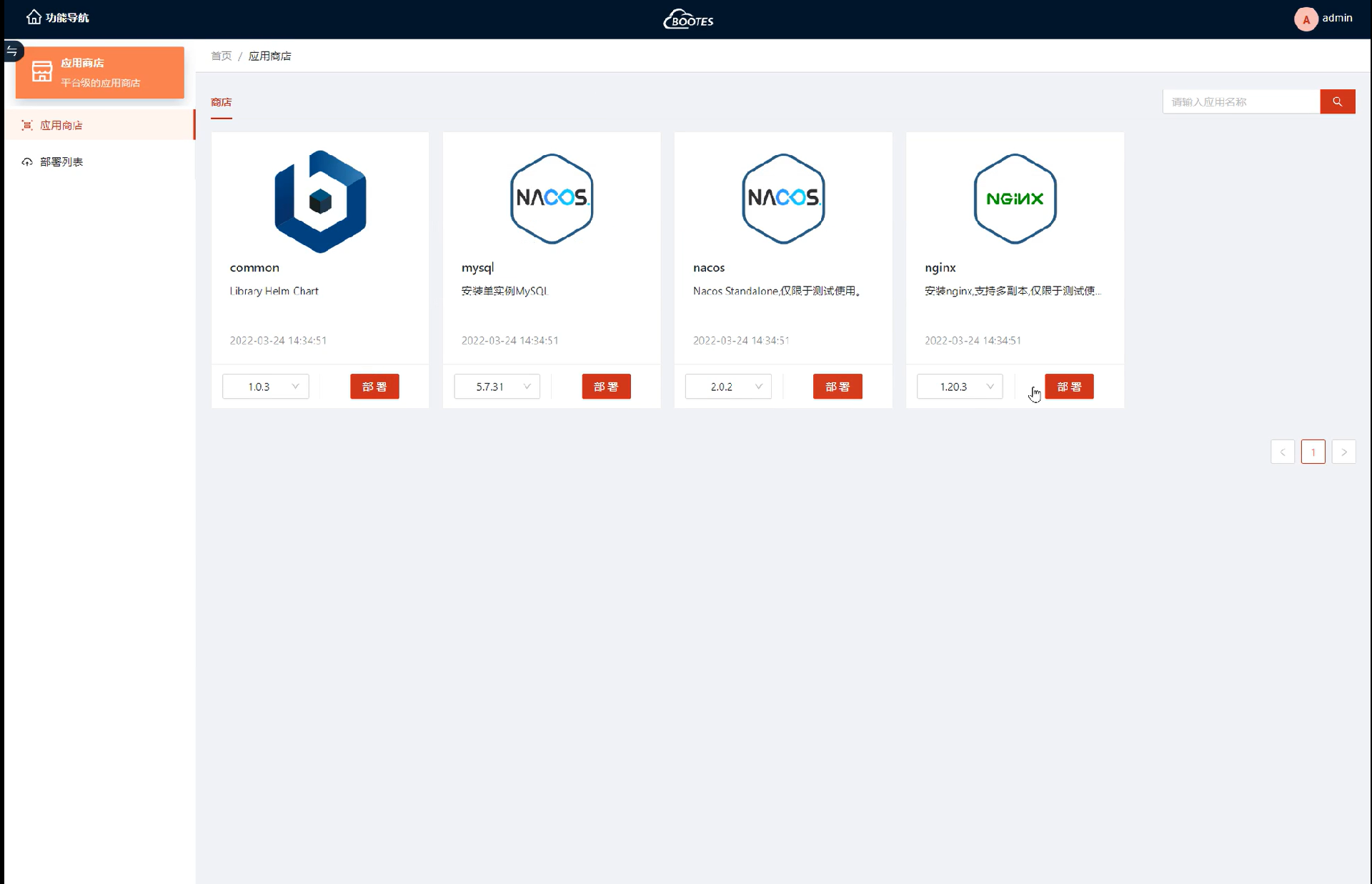 针对全类型应用提供快速、统一的部署能力和界面,并且支持应用商店闭环管理;